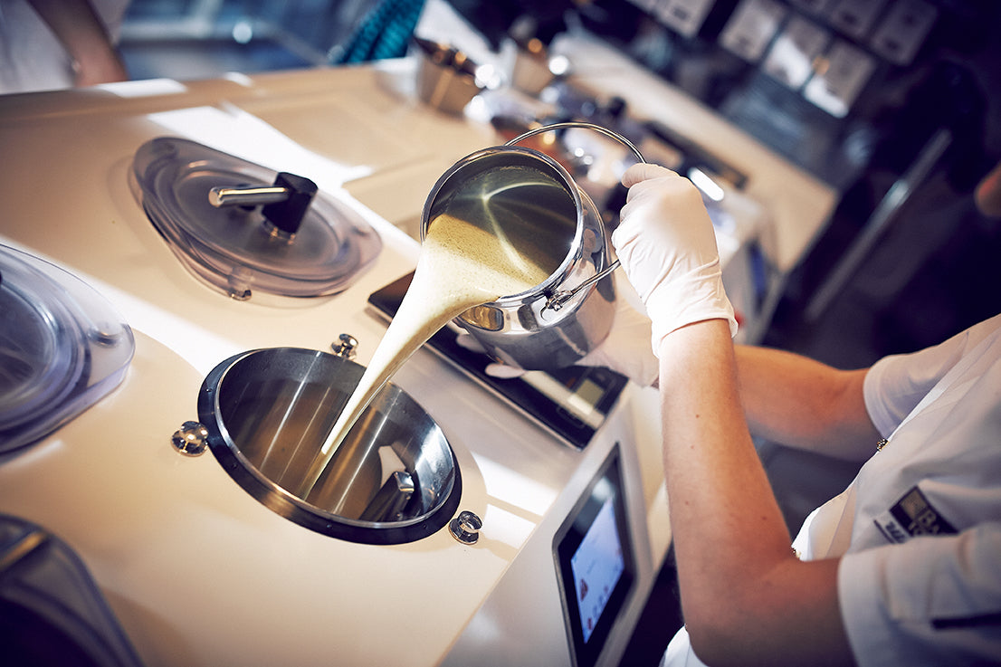 Unsere Eismaschinen sind denen unserer Eisdielen nachempfunden. Somit kannst du in wenigen Handgriffen, Eis und Sorbet auf Sterne-Küchen-Niveau kreieren und dein Eis & Gelato selber machen. Die Profi-Eismaschine für zuhause.